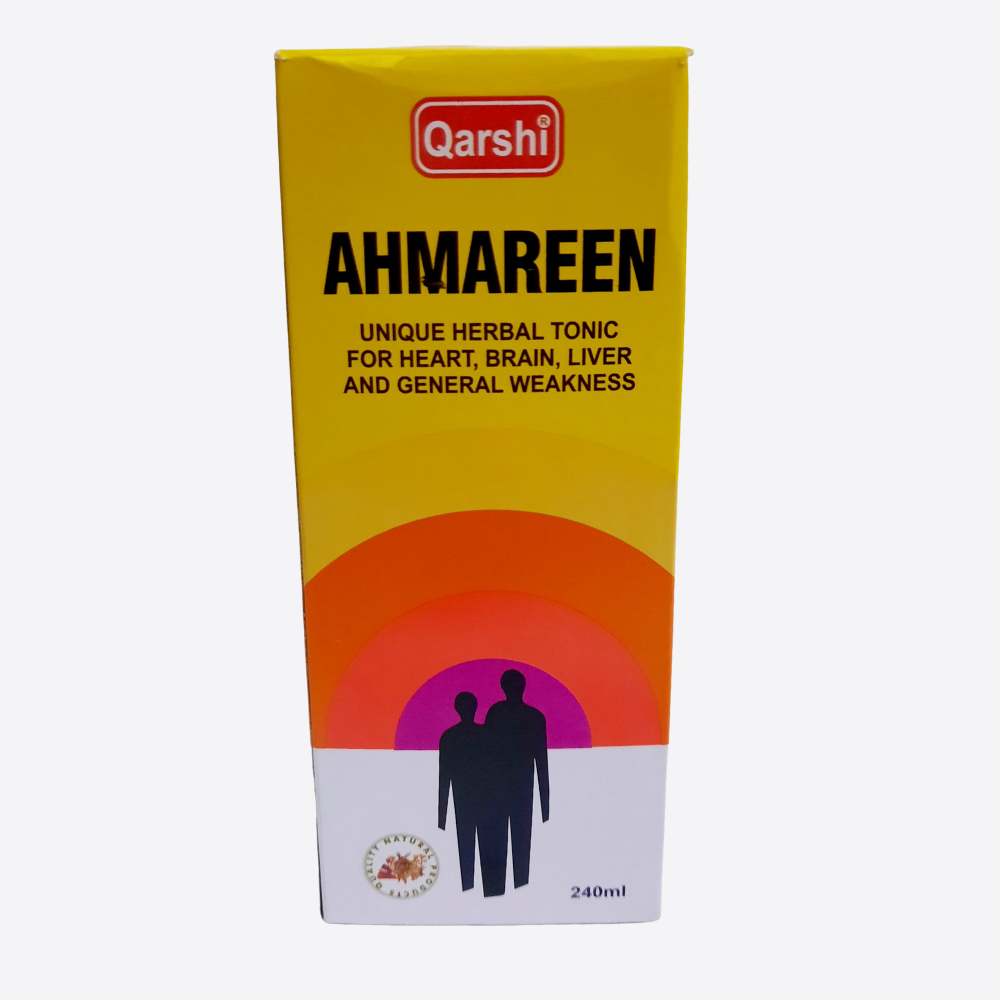 Ahmareen syrup helps regulate the heart, brain, and liver functions. It is also beneficial in general physical and mental weakness. Supplied in 240 ml.