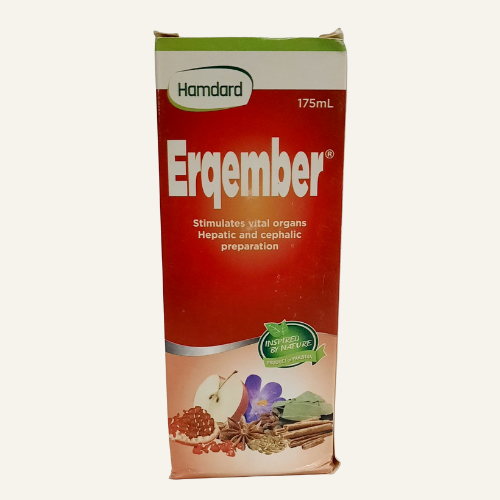Erqember is an energy-restoring Unani formulation designed to enhance physical stamina and overall vitality. It aids in replenishing depleted energy levels caused by illness, exhaustion, or malnutrition. The syrup also plays a significant role in purifying the blood and improving its quality and quantity. Regular use can result in increased alertness, better endurance, and a stronger immune response. Erqember is suitable for individuals of all ages seeking natural rejuvenation. This revitalizing tonic is supplied in a 175 mL bottle.