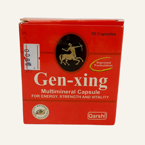 Gen-Xing is a premium energy and vitality booster in Unani medicine. Enhances strength, stamina, and sexual performance. Comes in a 30-capsule pack