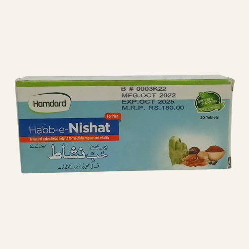 Habb-e-Nishat is formulated to support male sexual health by addressing premature ejaculation and spermatorrhoea. It helps increase semen volume and improve reproductive strength. A reliable herbal solution for masculine vigor. Each pack contains 20 tablets.