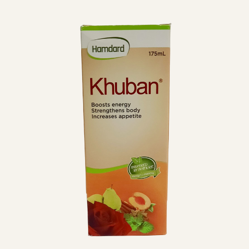 Khuban is a health-boosting Unani syrup made to enhance appetite and support digestion. It is especially beneficial for individuals with weak physical constitution, slow metabolism, or loss of appetite. The syrup strengthens internal organs and helps improve the assimilation of nutrients. It can be used as a daily supplement to support physical growth, especially in children or recovering adults. Khuban also provides energy and stamina to the body naturally, witho