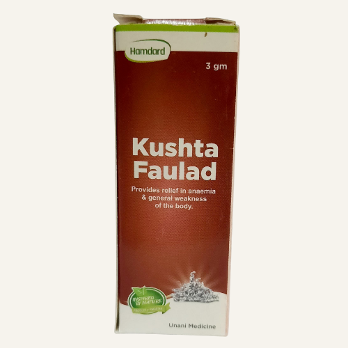 Kushta Faulad is a time-tested iron-rich Unani formulation that provides effective relief from iron-deficiency anaemia and general debility. It promotes red blood cell production, improves oxygen circulation, and enhances energy levels. The formulation is also helpful in managing fatigue, pallor, and weakness, especially in females and those recovering from illness. Kushta Faulad supports immune health and helps the body regain strength over time. Regular use contributes to robust physical endurance and improved nutrient absorption. Available in a 3-gram pack for measured and effective usage.