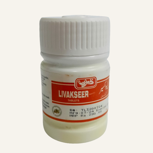 LIVAKSEER is a potent Unani formulation effective in managing hepatic disorders. It treats jaundice, liver enlargement, anaemia, and overall liver dysfunction. Supplied in a 50-tablet pack.
