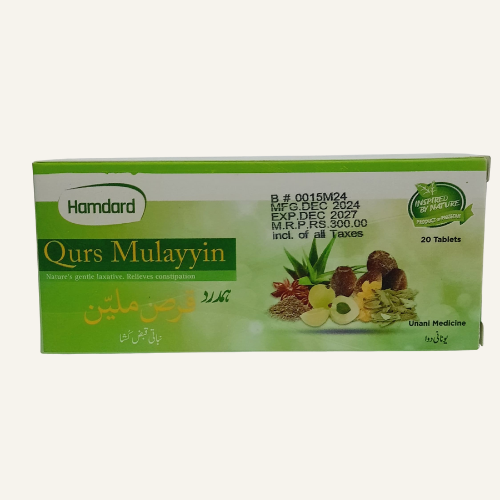 Qurs Mulayyin is a trusted Unani medicine designed to combat constipation and improve digestive efficiency. It works by stimulating peristaltic movements in the intestines, which facilitates the smooth passage of stool without cramping or dehydration. The herbal blend ensures gentle cleansing of the colon and improves stool consistency. It is particularly helpful in chronic constipation, bloating, and indigestion. With minimal side effects and no habit-forming agents, this remedy is ideal for routine digestive support. Supplied in 20-tablet packs, Qurs Mulayyin is an effective aid in maintaining bowel regularity.